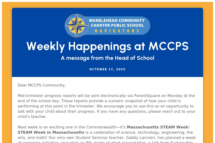 Make sure you keep up to date on all of the latest MCCPS news, announcements, and fun updates by following the official Marblehead Community Charter Public School Instagram!
